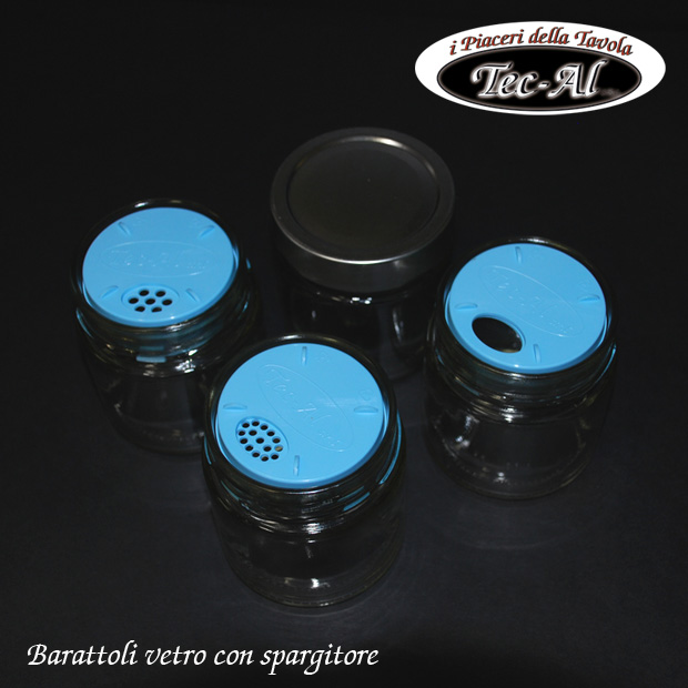 Vasetto in vetro con Spargitore a 3 calibri da 100 g. Sfusi in cartoni neutri da 30 pezzi.
