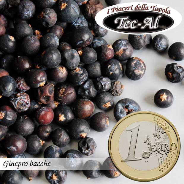 Le caratteristiche bacche del ginepro sono sferiche, di circa 7÷9 mm di diametro, la superficie è liscia, bruno-violacea, ricoperta di un sottile pulviscolo bianco. All’interno è contenuta una polpa rosso-bruna formata da tre semi oblunghi e ossei. L’odore della bacca è aromatico ed il sapore, dapprima dolciastro, si fa alla maturità leggermente acre. Il ginepro viene impiegato in cucina per aromatizzare tutti i piatti di carne e di pesce per apportare caratteristica nota aromatica.